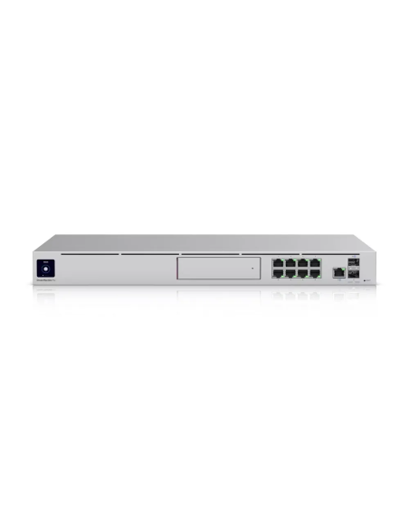 La Consola UniFi Gateway todo en uno de nivel empresarial es una solución de red potente y escalable de Ubiquiti Networks, diseñada para entornos de red exigentes. Es un dispositivo tipo "todo en uno" que combina las funciones de un gateway de seguridad, un switch de red, y un servidor de aplicaciones UniFi, todo en una sola unidad montable en rack. Su propósito principal es consolidar la gestión y operación de una red UniFi completa, ofreciendo un alto rendimiento, seguridad avanzada y redundancia para garantizar la continuidad del negocio.
