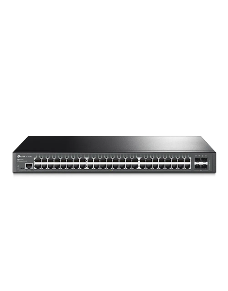 El TL-SG3452 ofrece una solución de switching de alto rendimiento, proporcionando conectividad Gigabit en todos sus puertos RJ45, lo que asegura transferencias de datos rápidas y eficientes para múltiples dispositivos. Las cuatro ranuras SFP (Mini-GBIC) permiten la conexión con fibra óptica, extendiendo el alcance de la red a distancias mayores. Como switch de capa 2 (L2), maneja el tráfico de datos a nivel de dirección MAC, lo que permite la implementación de funciones como VLAN y QoS para optimizar el rendimiento y la seguridad de la red.