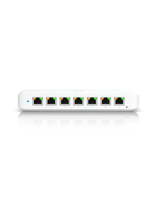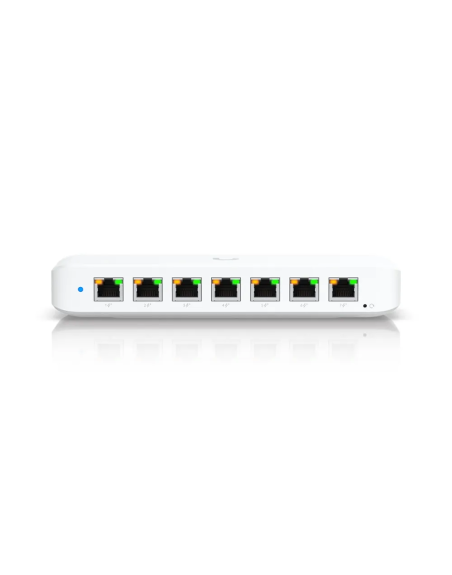 El USW-Ultra-210W es un switch PoE+ (Power over Ethernet Plus) de 7 puertos. Es una solución versátil y compacta diseñada para la instalación en estantes, paredes o escritorios. La principal característica de este switch es su alta capacidad PoE, que le permite alimentar una gran cantidad de dispositivos compatibles, como puntos de acceso Wi-Fi, cámaras de seguridad, teléfonos VoIP y otros equipos de red, todo a través de un solo cable Ethernet.